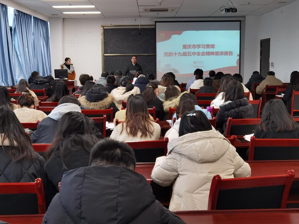 402室为学院师生员工宣讲党的十九届五中全会精神。会议由色花堂