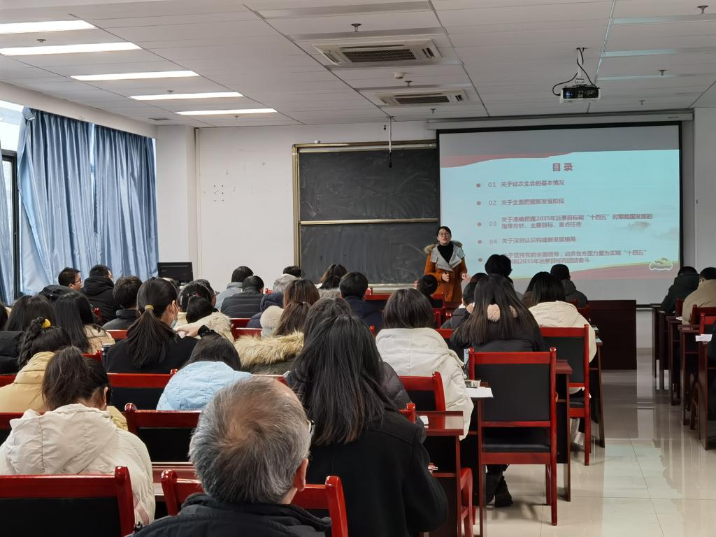 石老师主要从十九届五中全会的基本情况、全面把握新发展方向、准确把握2035年远景目标、深刻认识构建发展新格局和坚持党的全面领导等方面解读十九届五中全会。听了石老师的宣讲,学院师生对党的十九届五中全会精神有了更加深刻的认识和理解,表示将以此次宣讲为开始,进一步深入学习、融合学习。